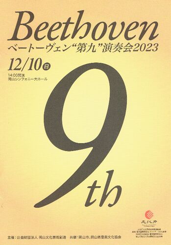 岡山フィル ベートーヴェン”第九”演奏会2023 指揮:飯森範親 ベートーヴェン/交響曲第9番ニ短調『合唱付き』 指揮:飯森範親 ソプラノ:森野美咲 メゾソプラノ:金子美香 テノール:中島康博 バス:大西凌 合唱:岡山”第九”を歌う会 2023年12月…
