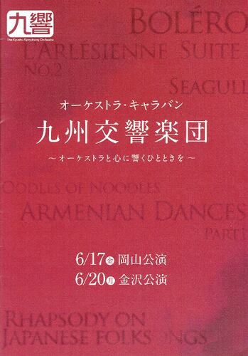 オーケストラ・キャラバン九州交響楽団 岡山公演 J.ドーシー/ウードルズ・オブ・ヌードルズ(※)真島俊夫/シーガル(※)石川亮太/日本民謡による狂詩曲(※)A.リード(中原達彦編)/アルメニアン・ダンス パート1 〜 休憩 〜ビゼー/「アルルの女」第2組…